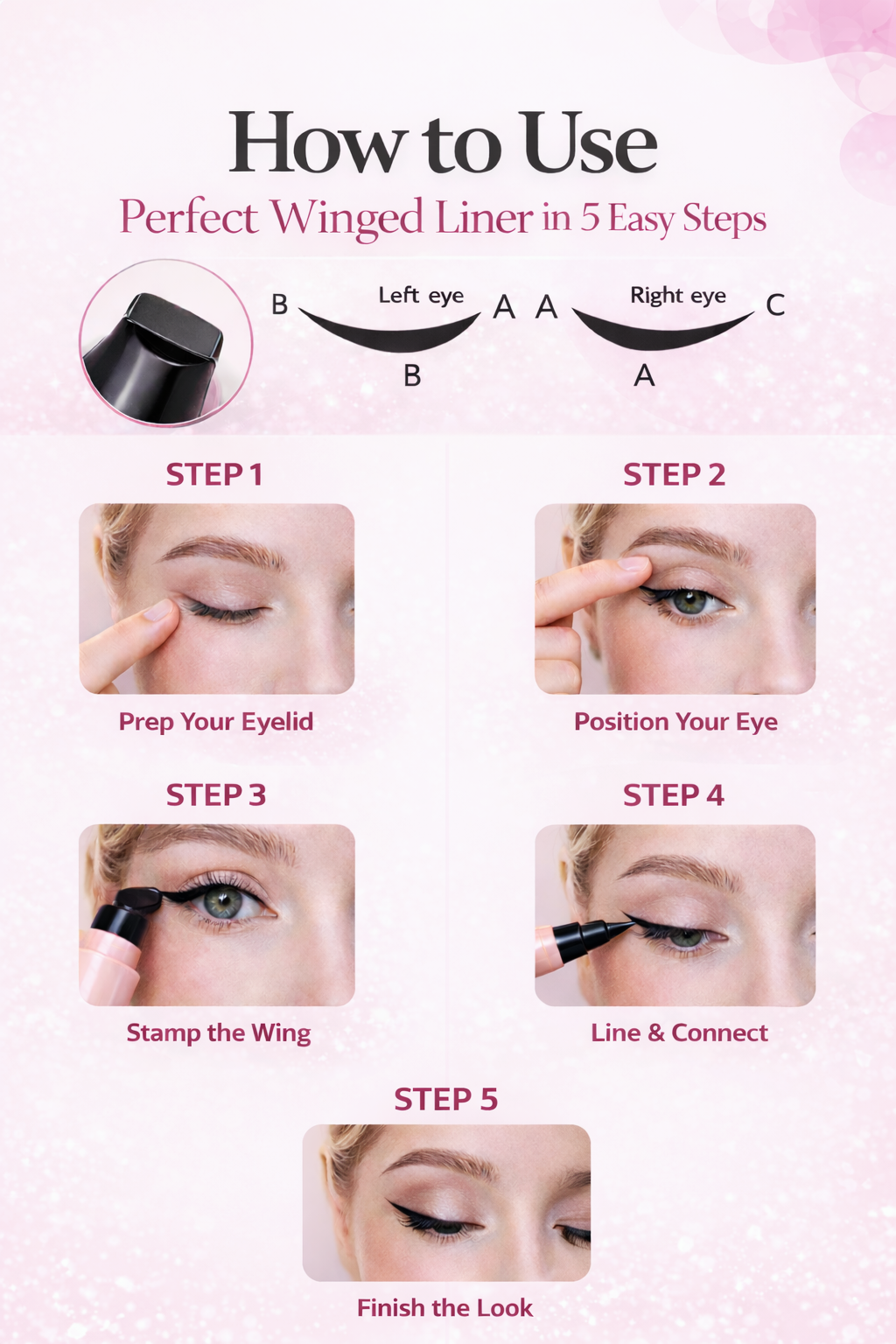 Say goodbye to eyeliner struggles. This innovative solution ensures you achieve beautiful, symmetrical wings with confidence in just seconds.